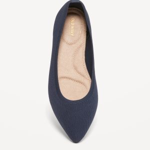 Soft-Knit Pointed-Toe Ballet Flats: soft-knit upper, pointed toe, quilted faux-suede foot bed, textured thermoplastic rubber outsole, 1/4″ heel, #795204