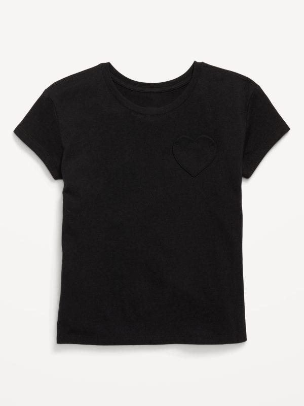 Softest Heart-Pocket T-Shirt for Girls: scoop neck, short sleeves, heart shaped patch pocket, hi-lo hem, #867799