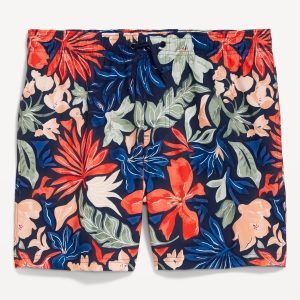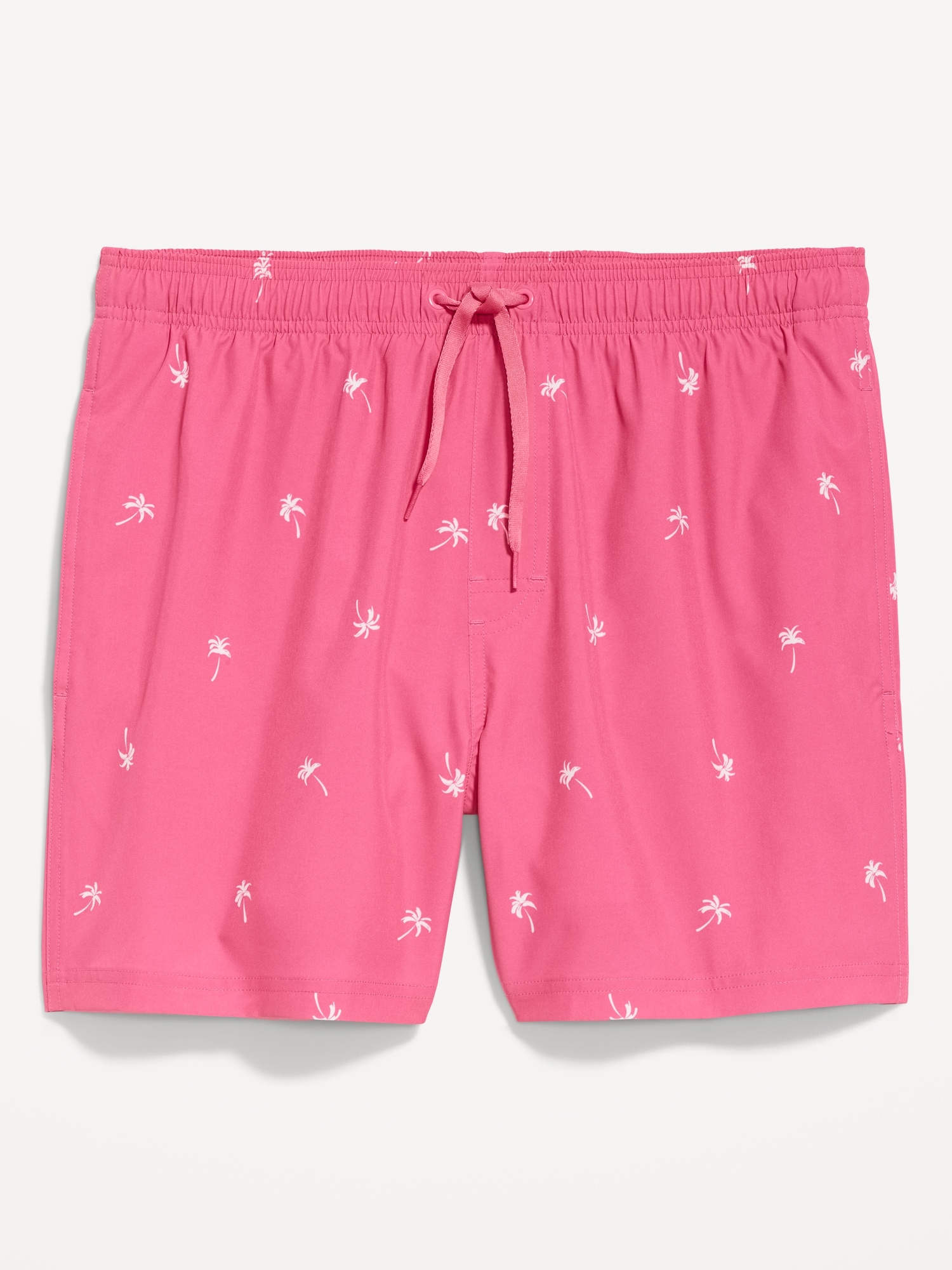 Solid Swim Trunks — 5-inch inseam: elastic-drawstring waistband, on-seam pockets, back pocket with grommet drain, built-in mesh briefs, pull-on style, all-over cocktail print, #766289