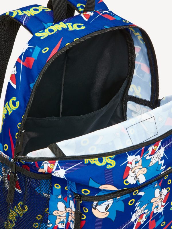 Sonic The Hedgehog™ Canvas Backpack for Kids: The pack that’s got their literal back.zip-top closure, canvas handle, padded shoulder straps with adjustable buckles, padded mesh back for added comfort and breathability, exterior zippered pouch compartment, durable stretchy mesh side pouch, smooth interior with interior mesh pocket, © SEGA., #761668