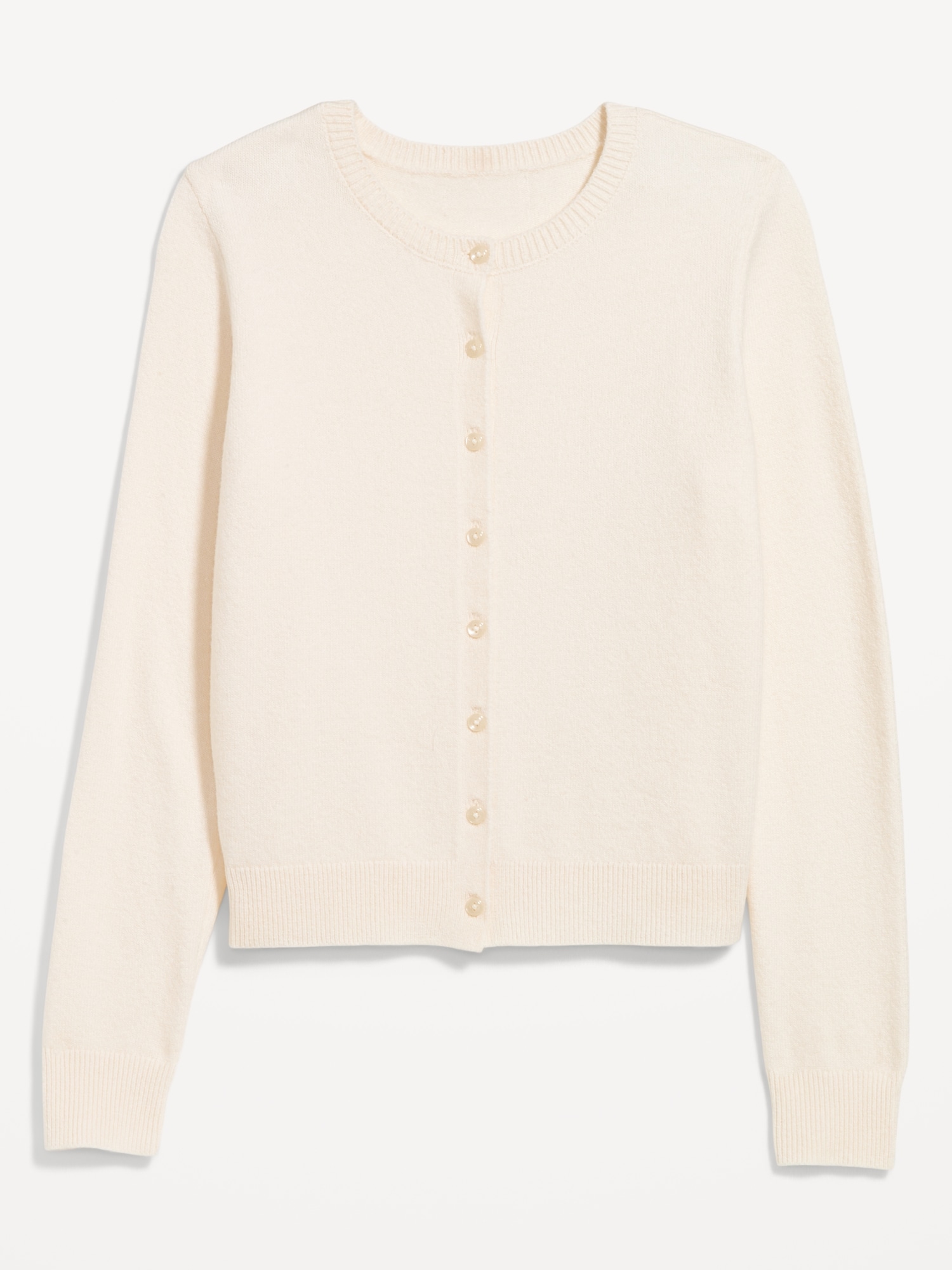 SoSoft Cropped Cardigan Sweater: Featuring SoSoft. Literally “so soft” it’s got cashmere jealous.crew neck, long sleeves, full-button front, #785112