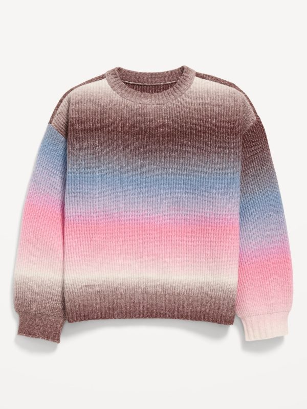 SoSoft Oversized Sweater for Girls: crew neck, long sleeves, drop shoulders, ombre pattern, #825025