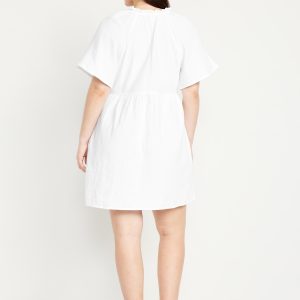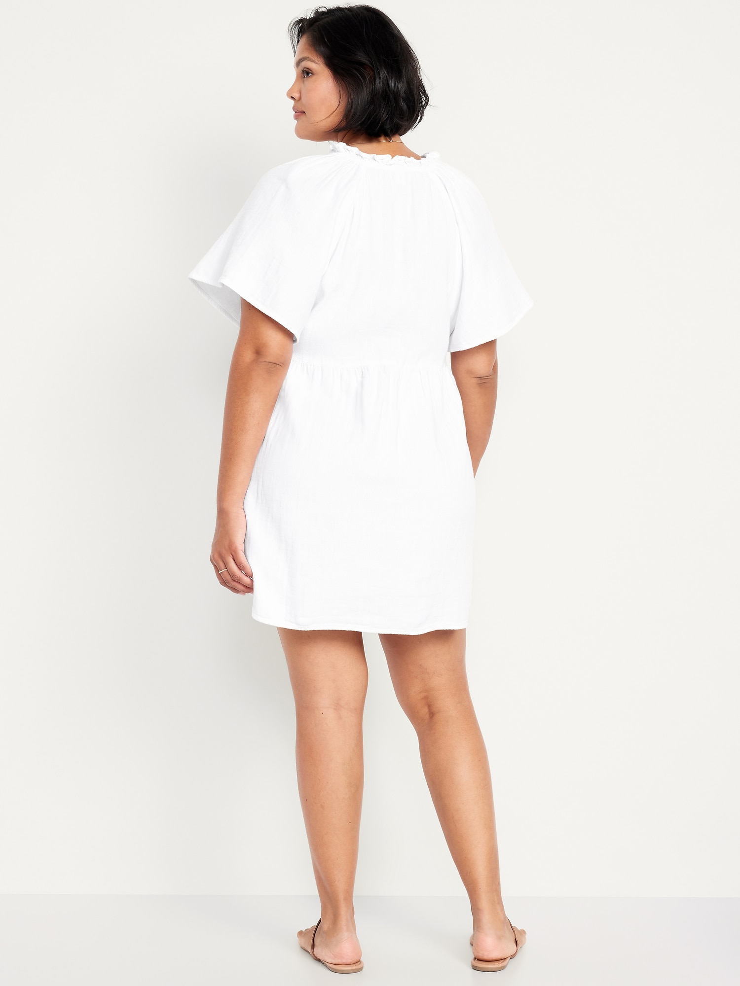 Split-Neck Crinkle Gauze Mini Swing Dress