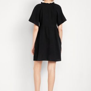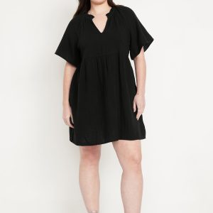 Split-Neck Crinkle Gauze Mini Swing Dress