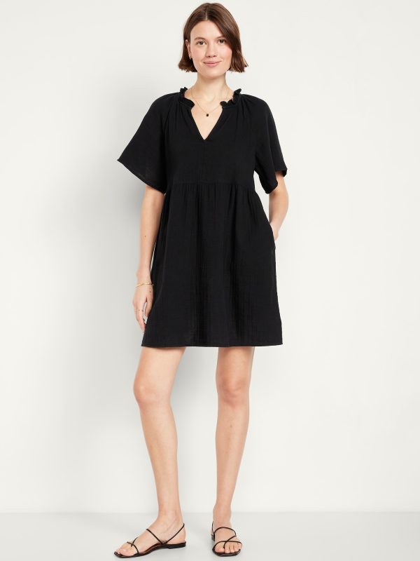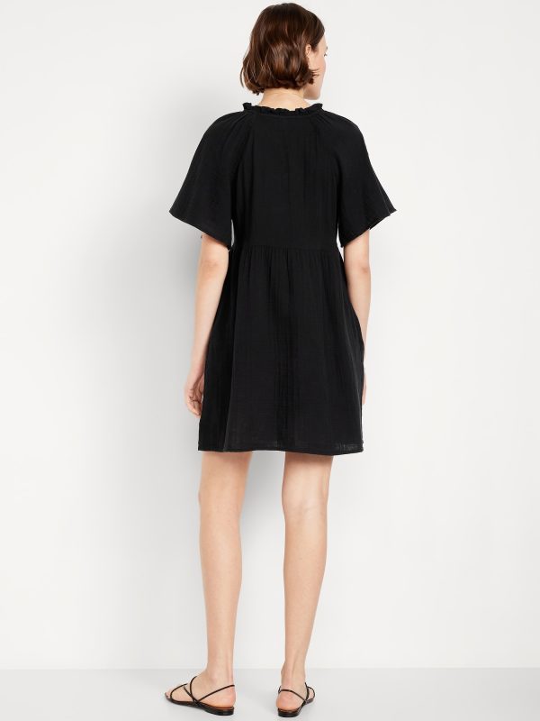 Split-Neck Crinkle Gauze Mini Swing Dress