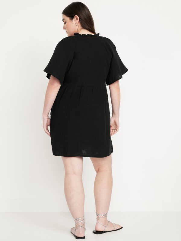 Split-Neck Crinkle Gauze Mini Swing Dress