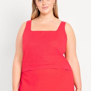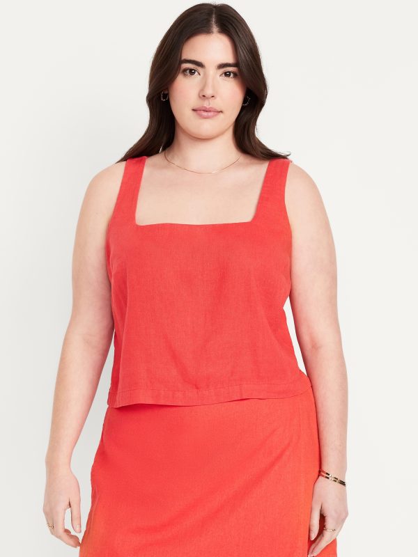 Square-Neck Linen-Blend Crop Tank Top: square neck, sleeveless, darted bust, #756733