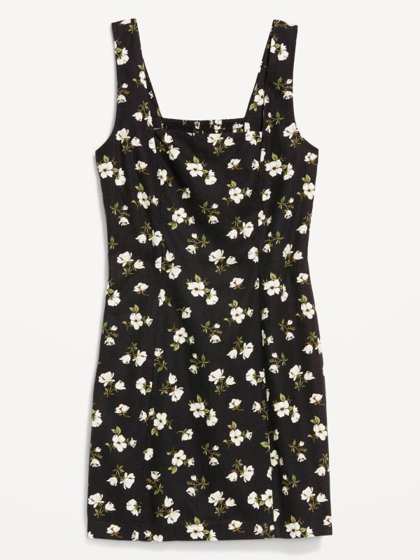 Square-Neck Linen-Blend Floral Mini Dress