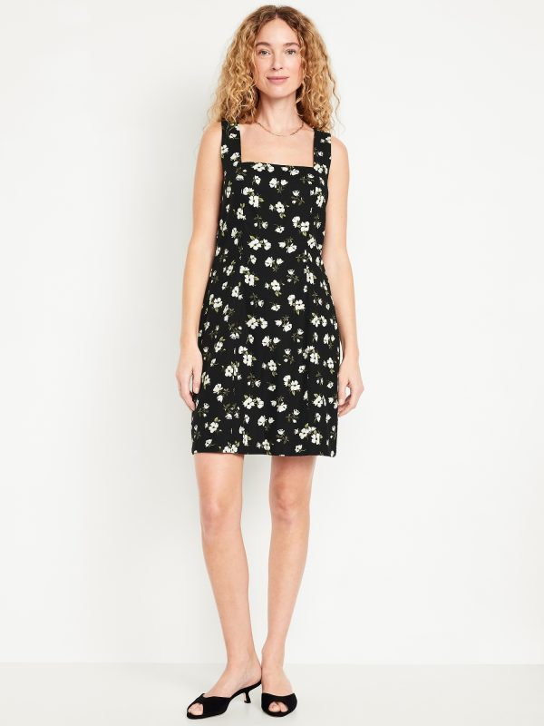 Square-Neck Linen-Blend Floral Mini Dress: square neck, wide straps, smocked back, princess seams, mini length, gingham print, #708450