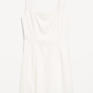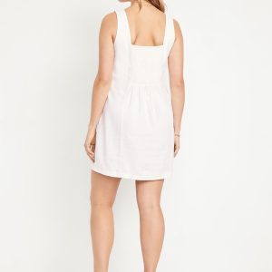 Square-Neck Linen-Blend Mini Dress