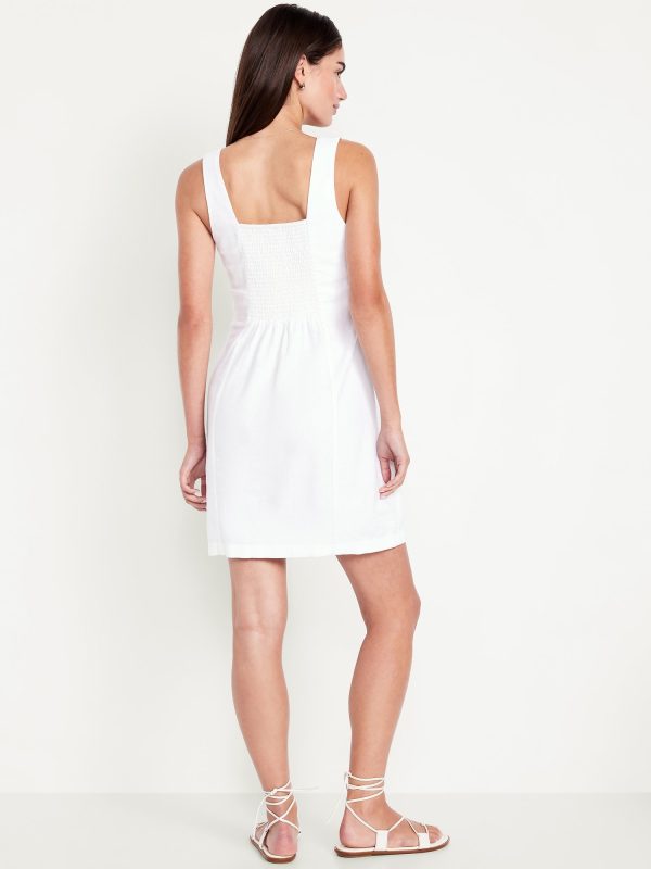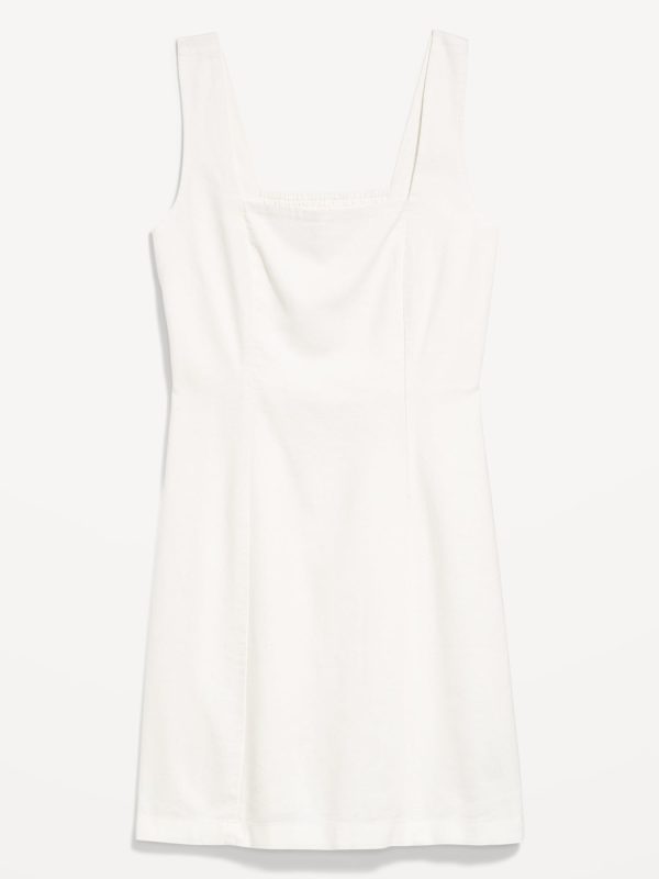 Square-Neck Linen-Blend Mini Dress