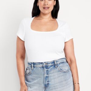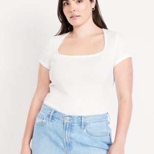 Square-Neck Ribbed T-Shirt