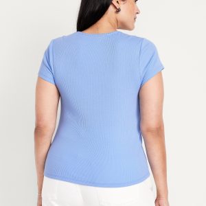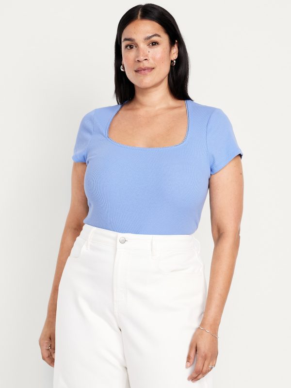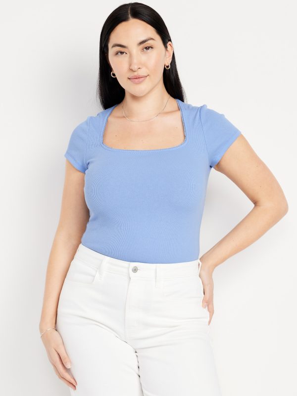 Square-Neck Ribbed T-Shirt: square neck, short sleeves, #749343