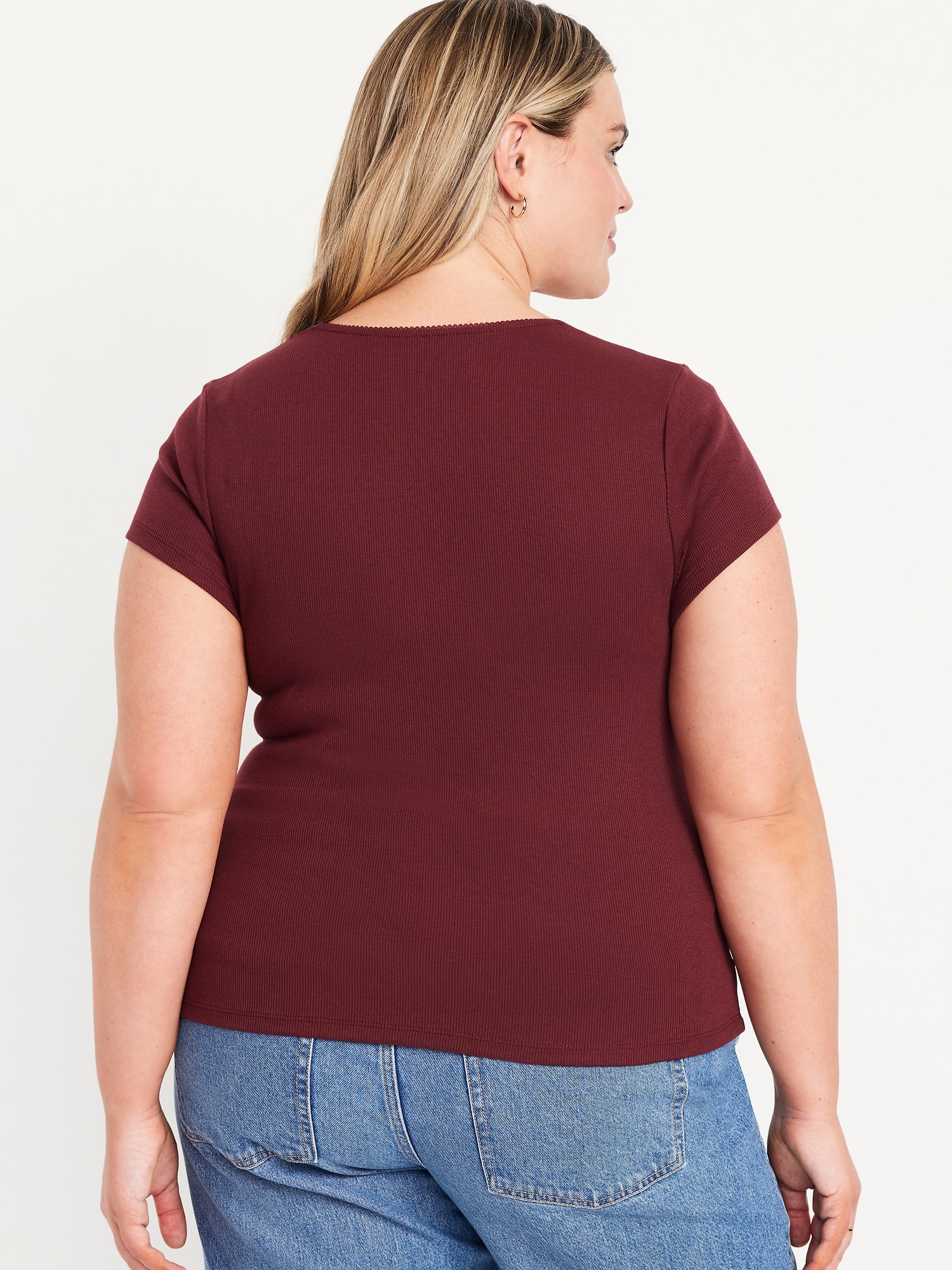 Square-Neck Ribbed T-Shirt: square neck, short sleeves, #749343