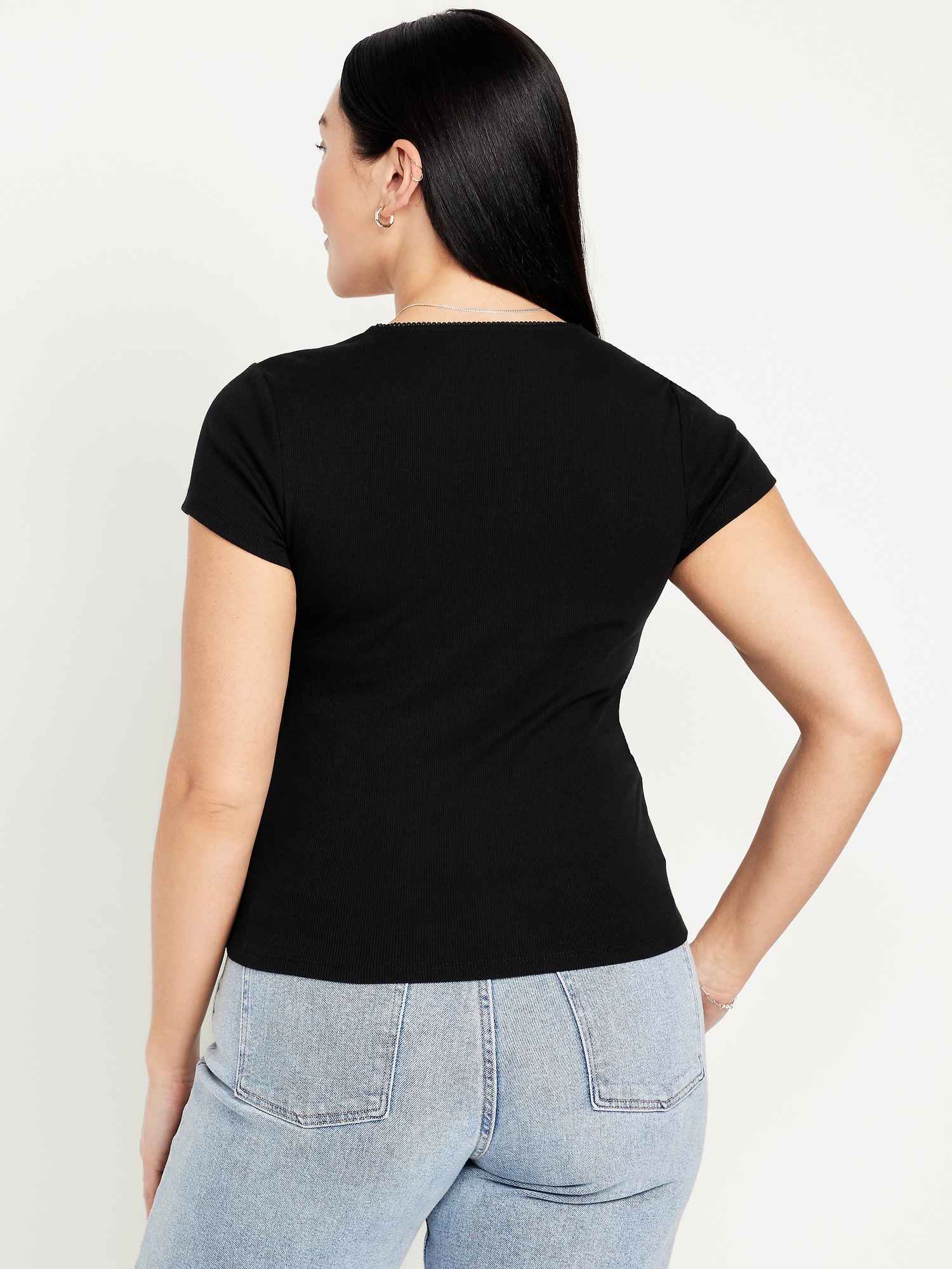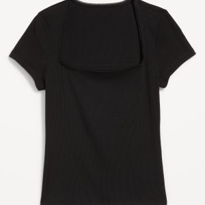 Square-Neck Ribbed T-Shirt: square neck, short sleeves, #749343