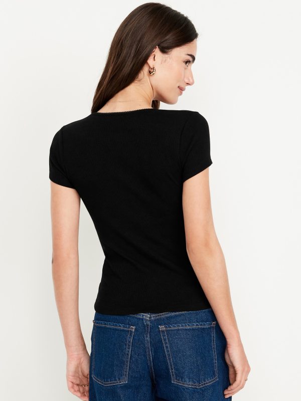 Square-Neck Ribbed T-Shirt: square neck, short sleeves, #749343