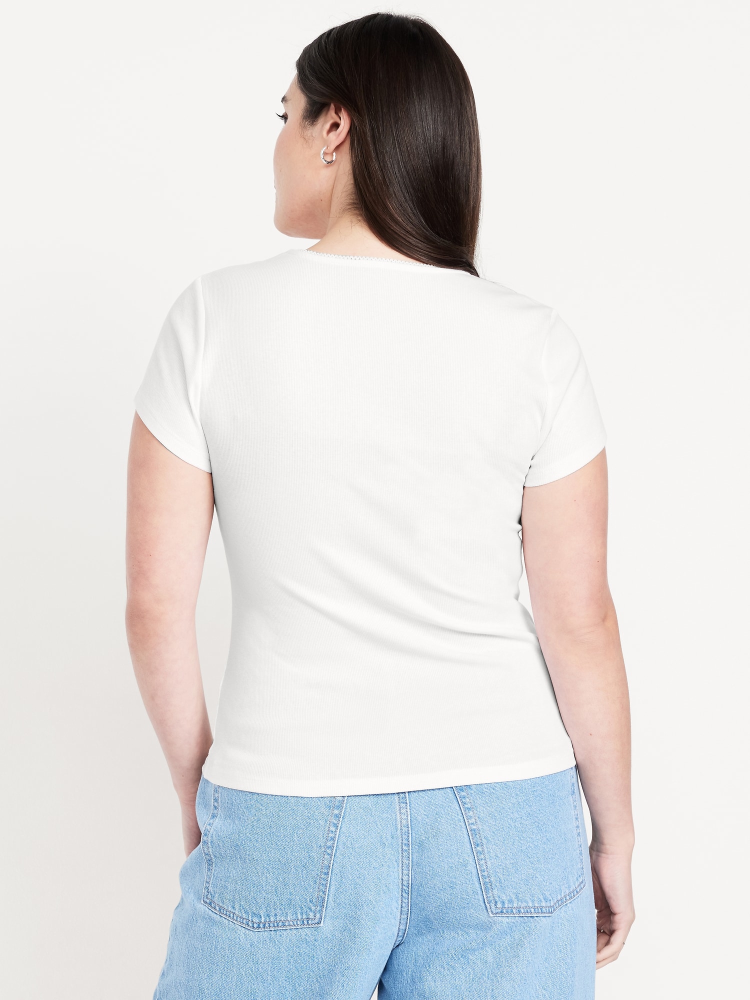 Square-Neck Ribbed T-Shirt: square neck, short sleeves, #749343