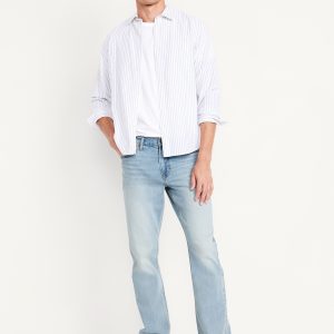 Straight Built-In Flex Jeans: button front, belt loops, zip fly, front scoop pockets, back patch pockets, fading and whiskering, #796708