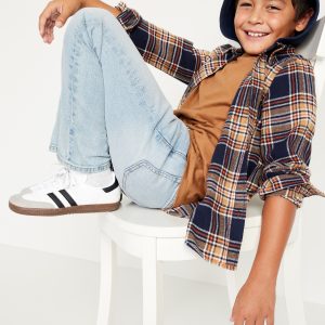 Straight-Leg Built-In Flex Jeans for Boys: Comfy, durable, wear-on-repeat faves.interior adjustable waistband, button closure, zip fly, scoop pockets and coin pocket, patch pockets at back, #814201