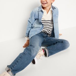 Straight-Leg Built-In Flex Jeans for Boys: Comfy, durable, wear-on-repeat faves.interior adjustable waistband, button closure, zip fly, scoop pockets and coin pocket, patch pockets at back, #814201
