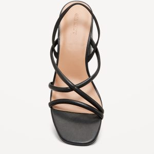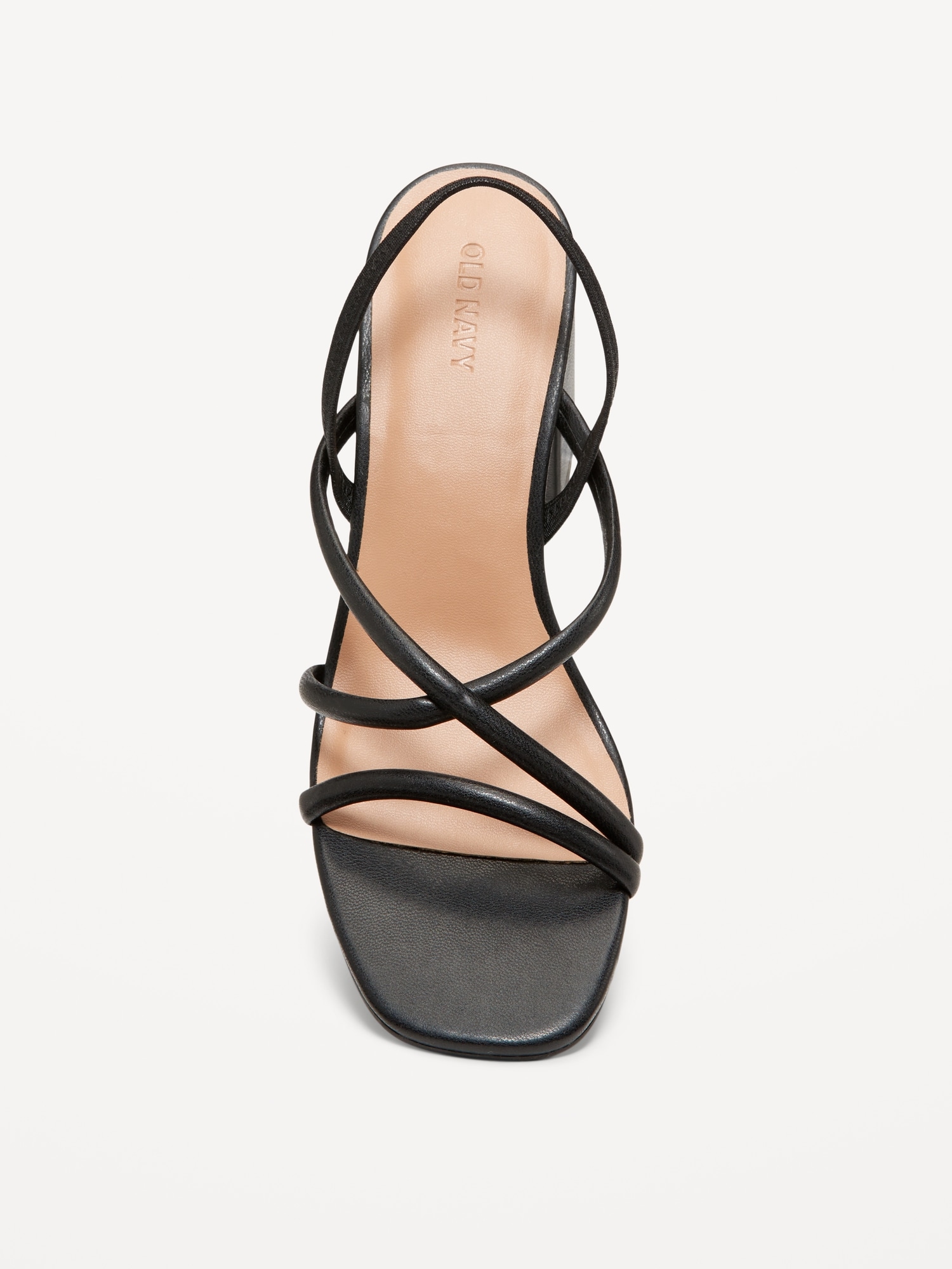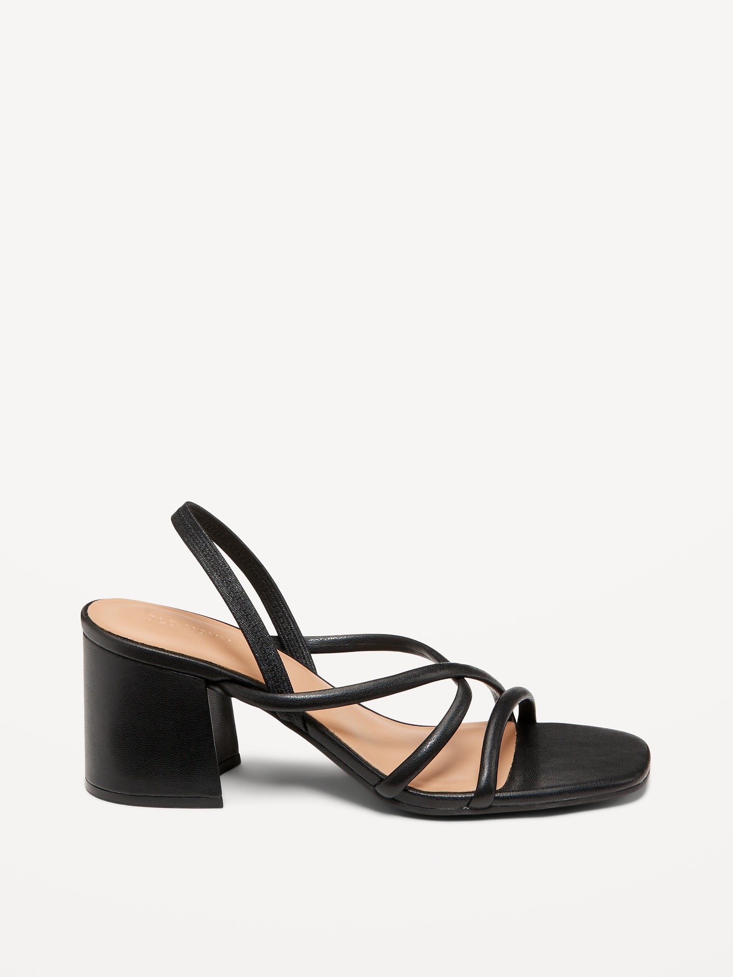 Strappy Block Heel Sandals: faux-leather upper, elastic slingback strap, block heel, #663992