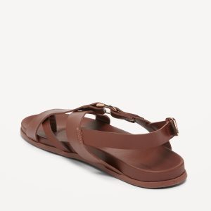 Strappy O-Ring Sandals: faux leather upper, buckle fastening, gold tone O-ring detail, molded foot bed, #663906