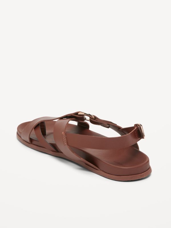 Strappy O-Ring Sandals: faux leather upper, buckle fastening, gold tone O-ring detail, molded foot bed, #663906