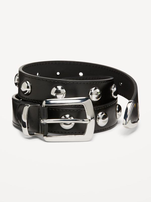 Studded Belt for Women: silver-tone domed stud accents, buckle closure, #806237