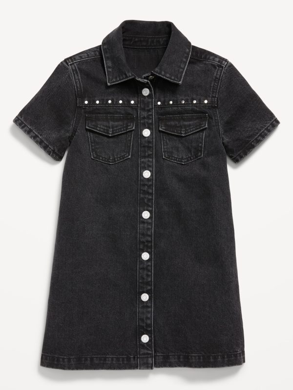 Studded Pocket Jean Shirt Dress for Girls