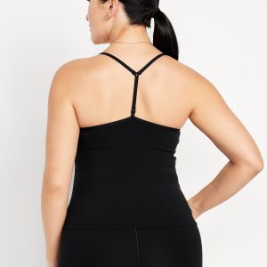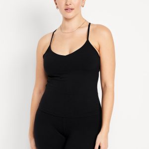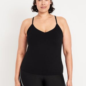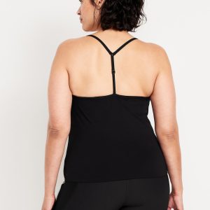 StudioSmooth Racerback Support Top: Featuring StudioSmooth. Buttery soft and breathable, with a barely-there feel.v-neck, adjustable racerback strap, shelf bra with removable pads, go-dry wicks moisture, breathable, #785415