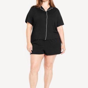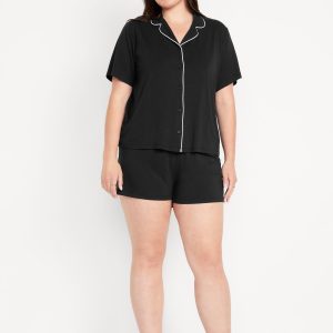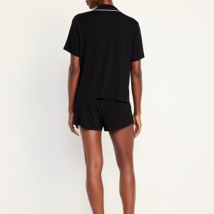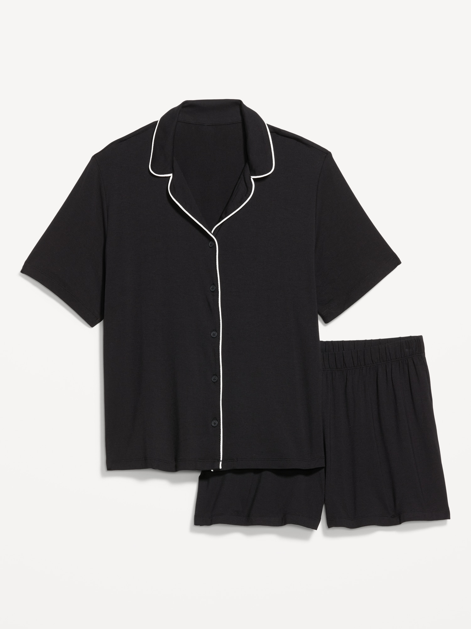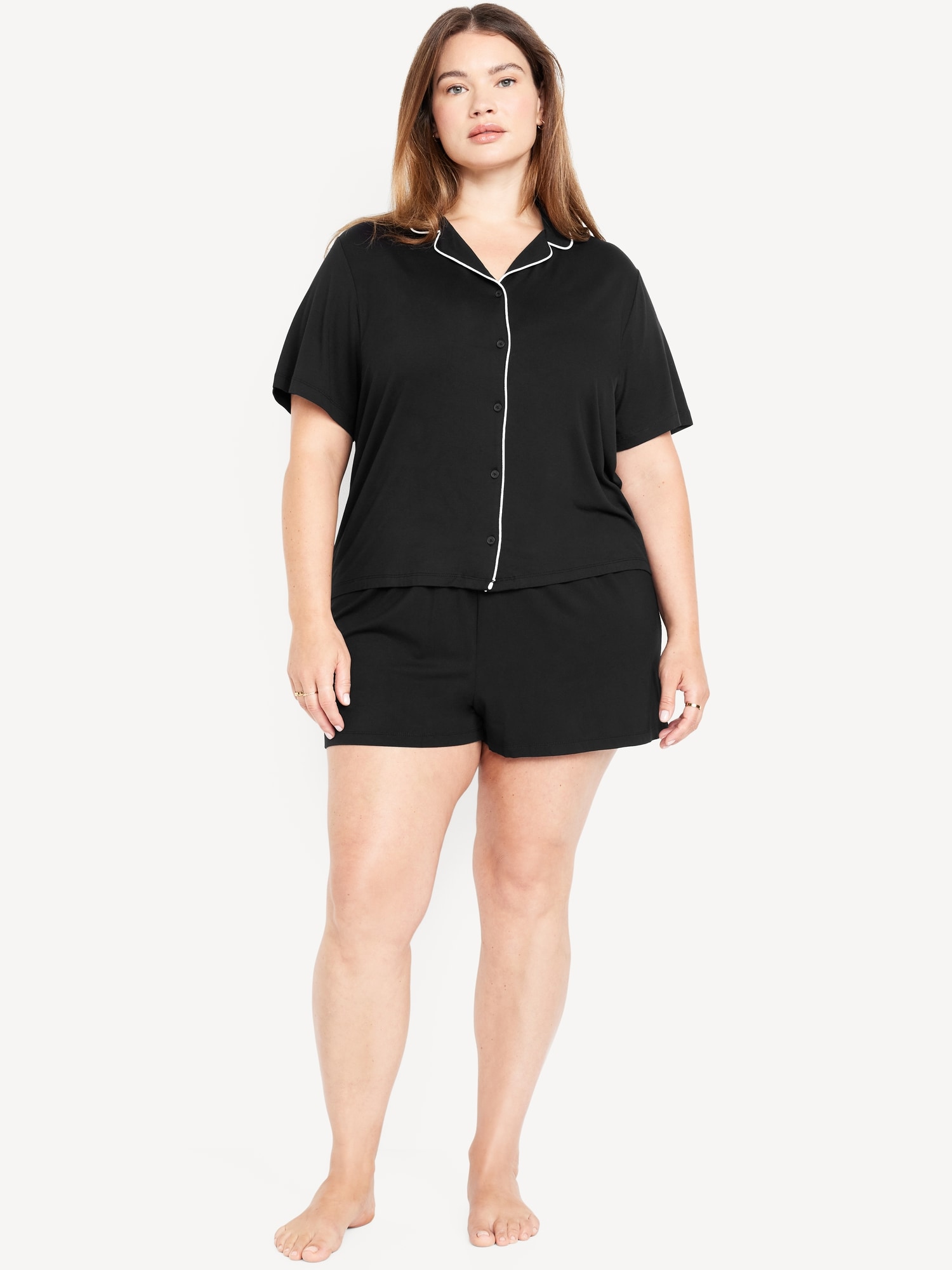 Sunday Sleep Knit Jersey Short Set: Knit jersey so unbelievably soft and stretchy.set includes pajama shirt and matching shorts, spread collar, short sleeves, full-button front, elastic-waist pull-on shorts, #422180