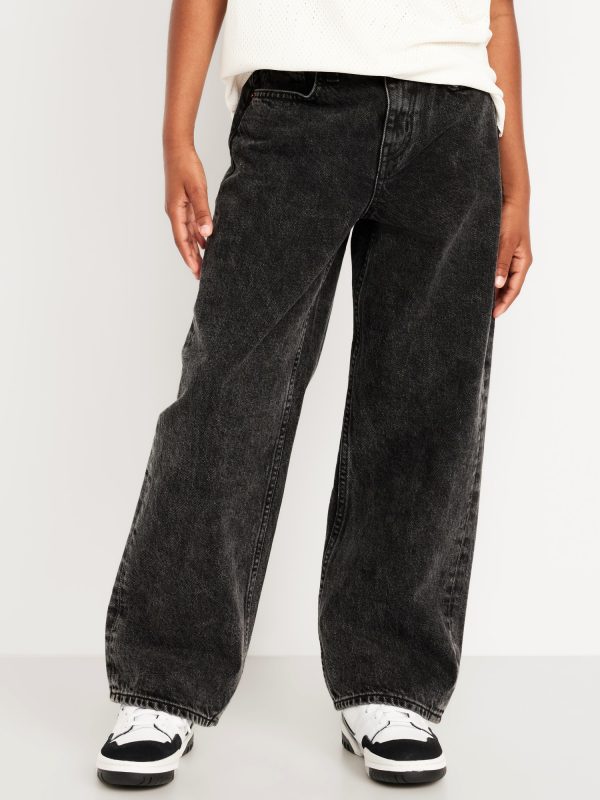 Super Baggy Jeans for Boys: interior adjustable waistband, sizes 5-8 snap-button closure, regular button closure sizes 10-20, zip fly, scoop pockets and coin pocket, patch pockets at back, #766416