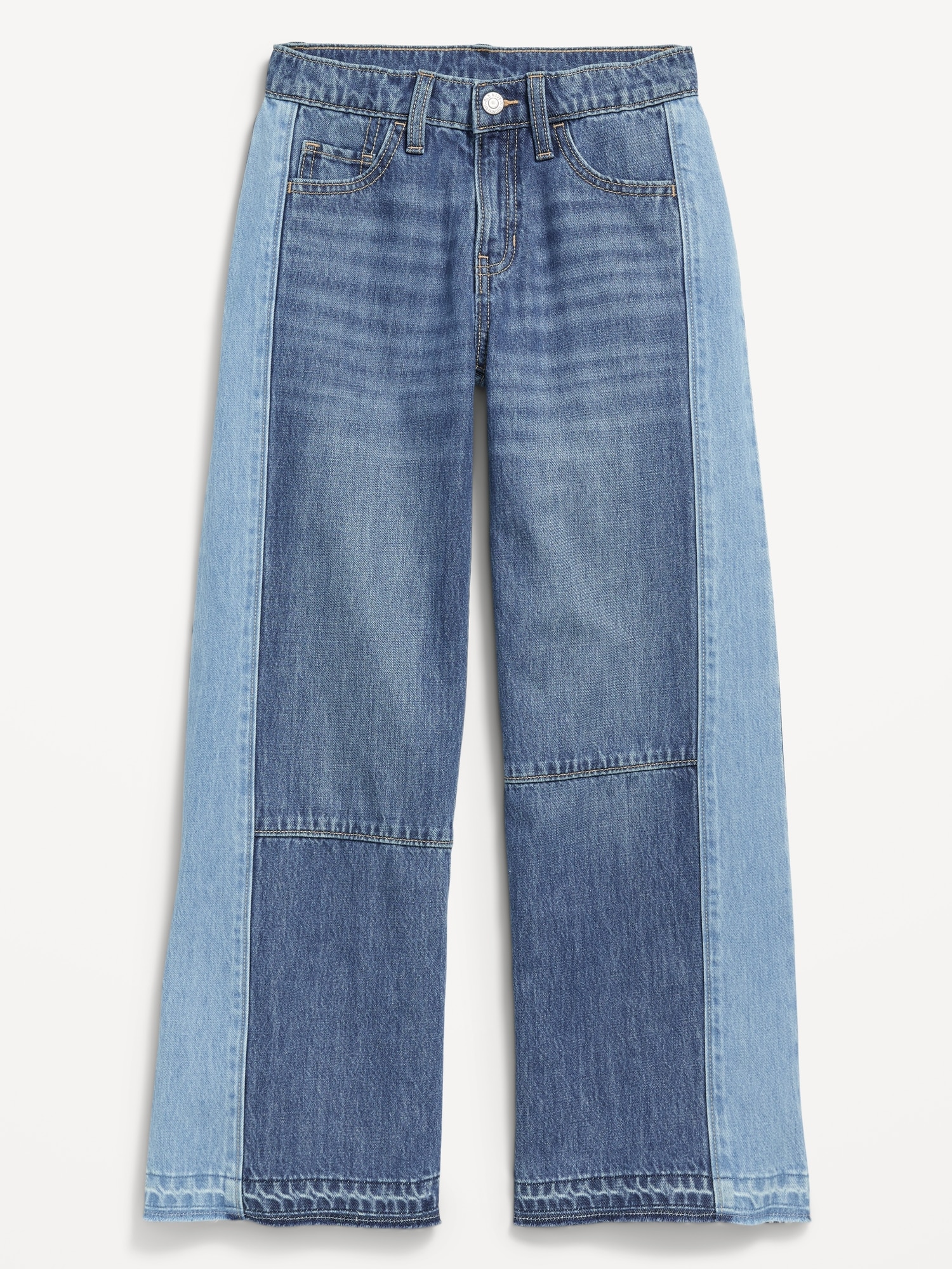 Super Baggy Two-Tone Wide-Leg Jeans for Girls