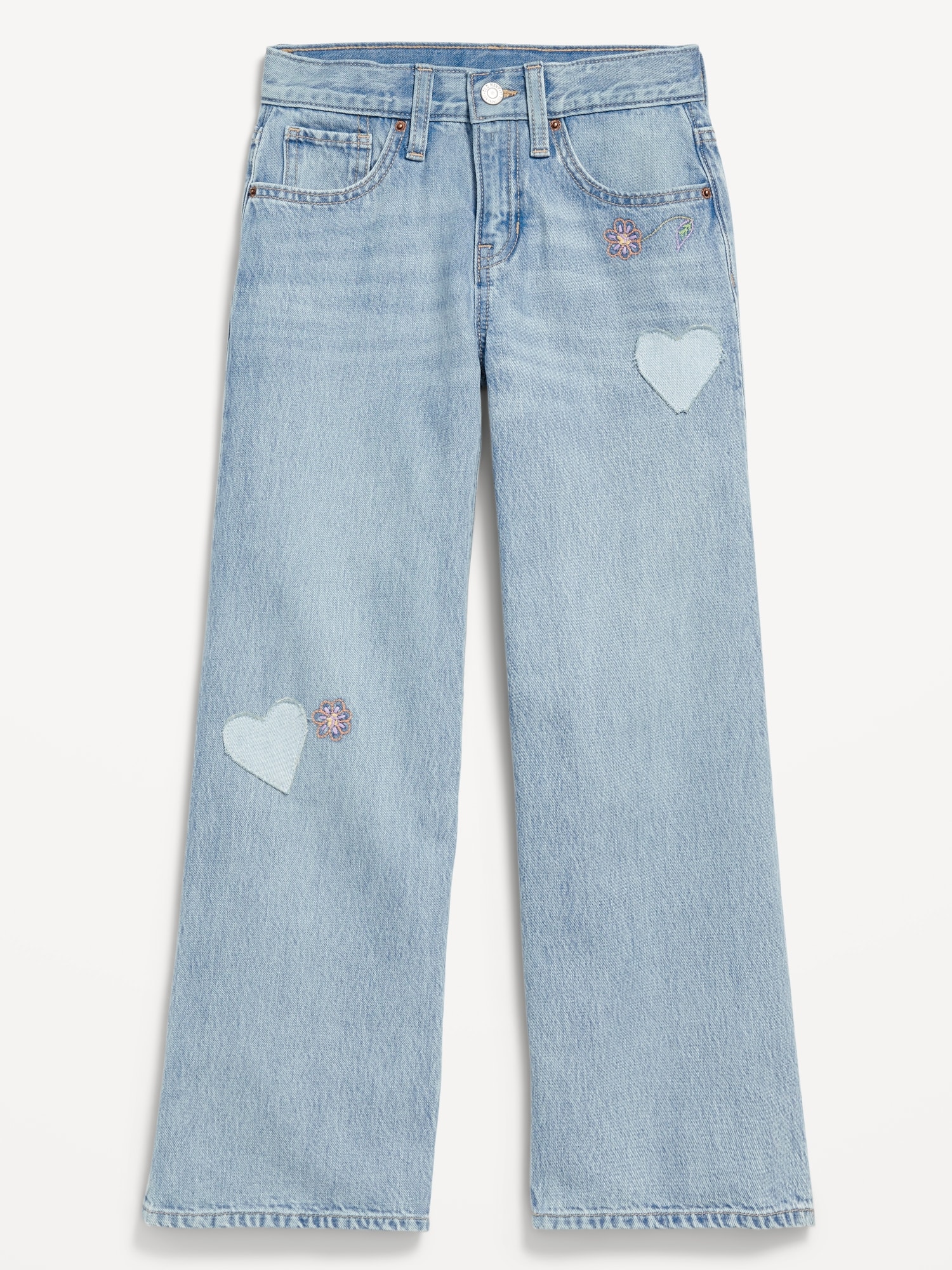 Super Baggy Wide-Leg Embroidered Jeans for Girls