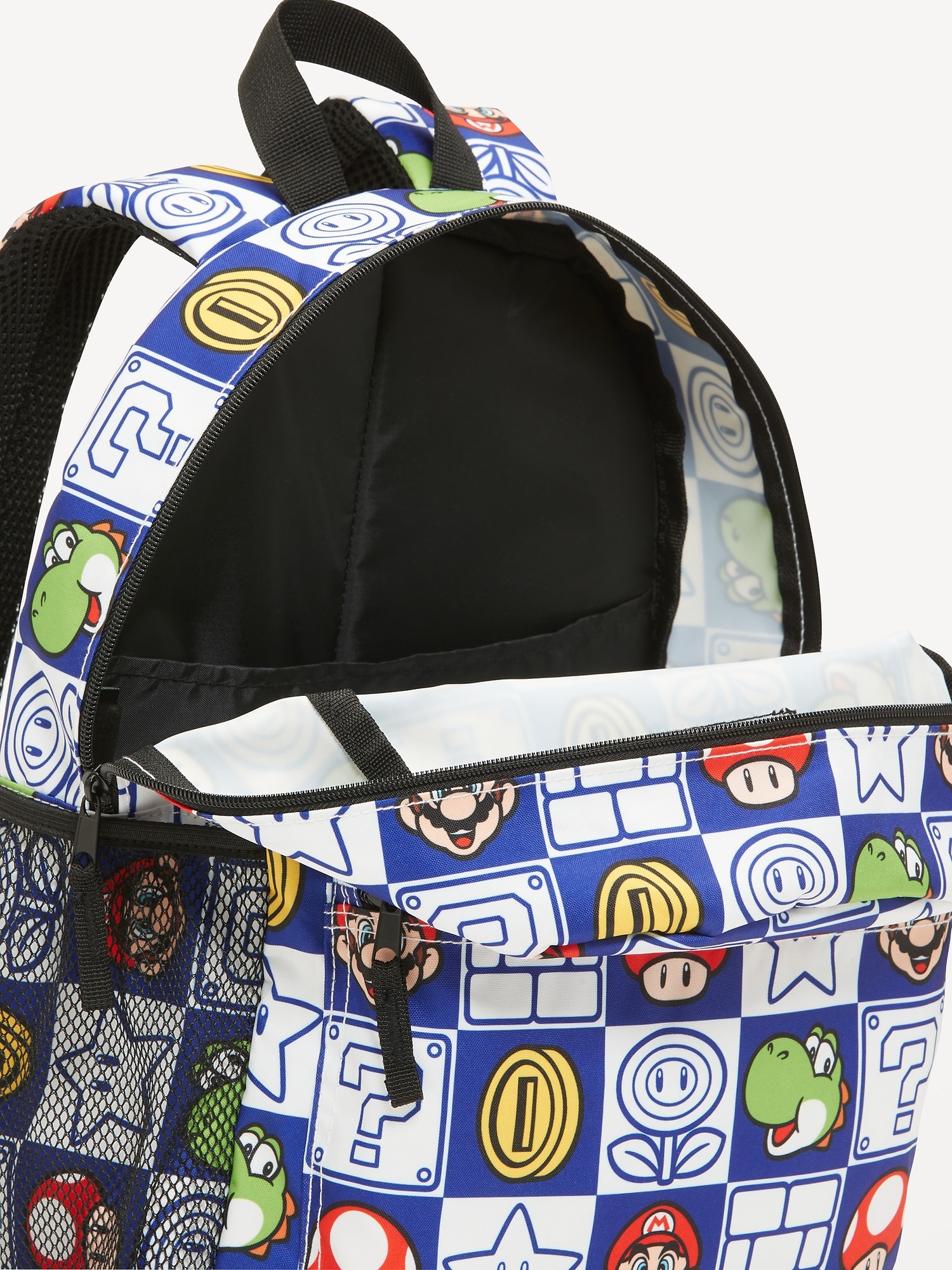 Super Mario Bros.™ Canvas Backpack for Kids: The pack that’s got their literal back.zip-top closure, canvas handle, padded shoulder straps with adjustable buckles, padded mesh back for added comfort and breathability, exterior zippered pouch compartment, durable stretchy mesh side pouch, smooth interior with interior pocket, ™ & © 2025 Nintendo, #763188