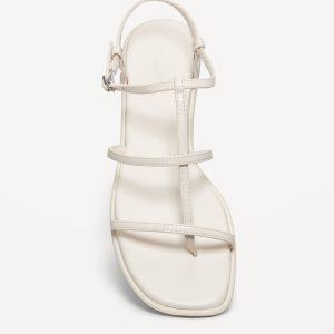 T-Bar Strappy Sandals for Women: faux leather upper, buckle closure at ankle, cushioned foot bed, #748772