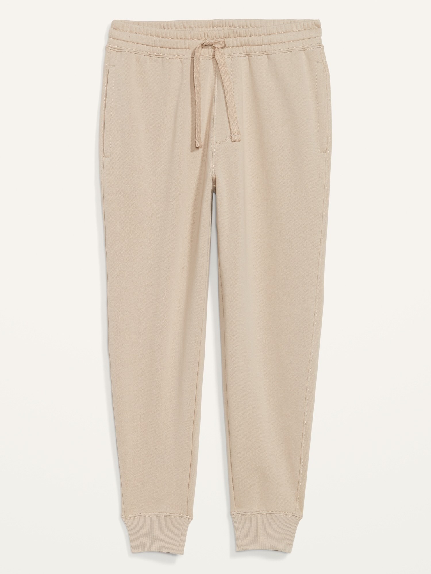 Tapered Jogger Sweatpants: elastic-drawstring waist, faux fly, on-seam pockets, single back patch pocket, rib-knit cuffs, pull-on style, #470325