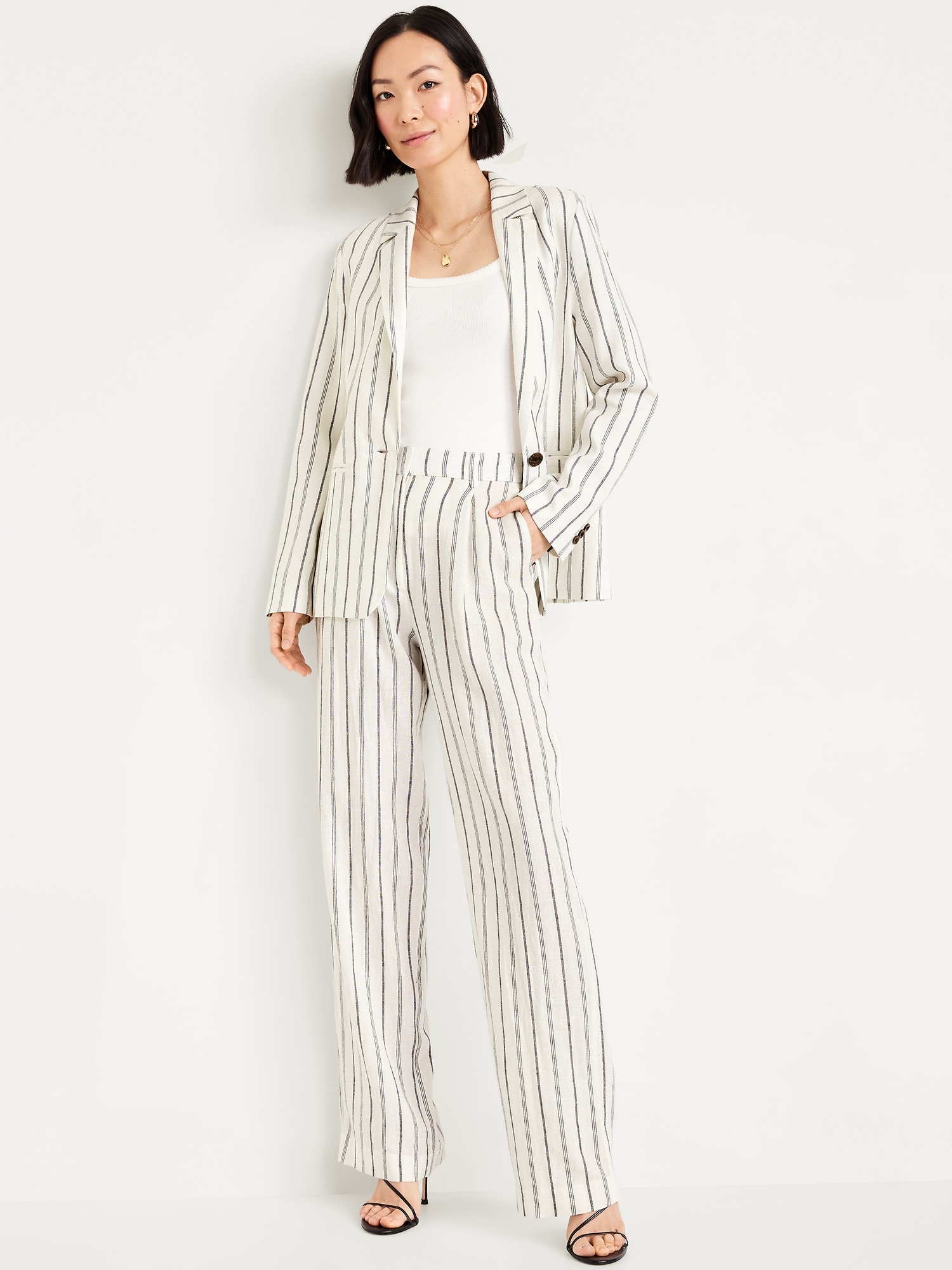 Taylor Fitted Linen-Blend Suit Blazer