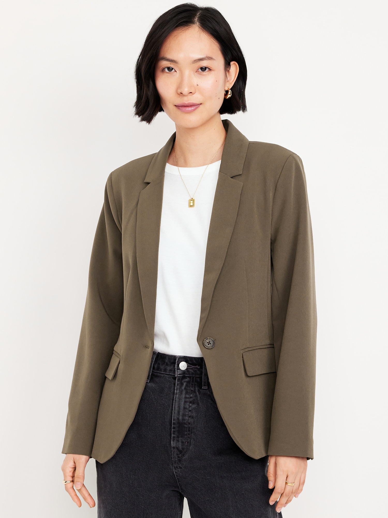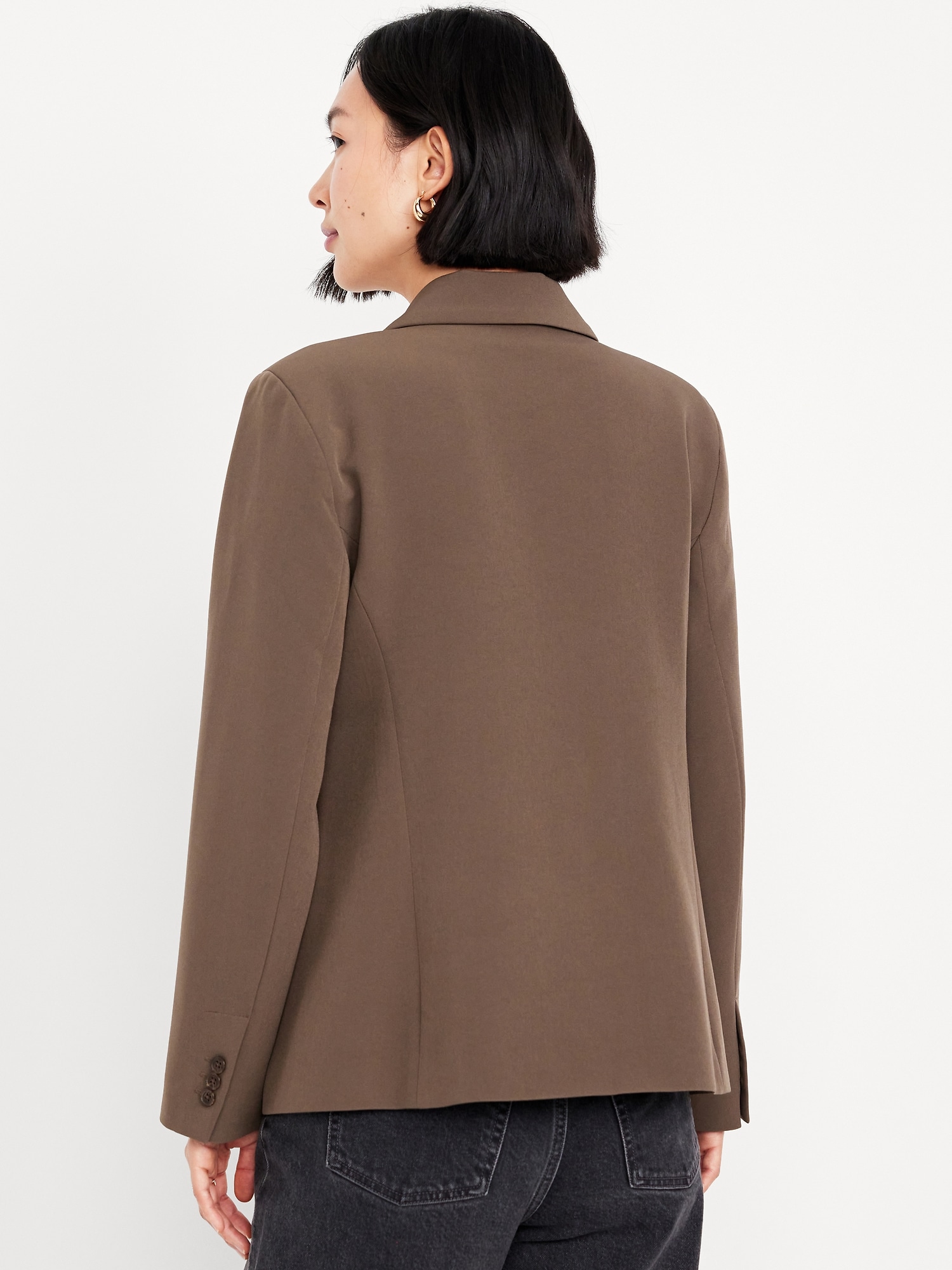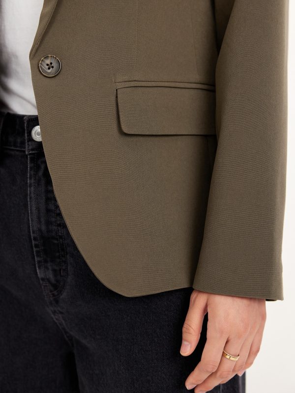 Taylor Fitted Suit Blazer: notched lapel, long sleeves, buttoned cuffs, single-button front, flap pockets, #479495