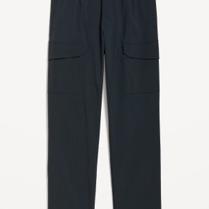 Tech Cargo Utility Pants: elastic-drawstring waistband, diagonal hip pockets, back right welt pocket, flap-cargo pockets at thigh, #801802