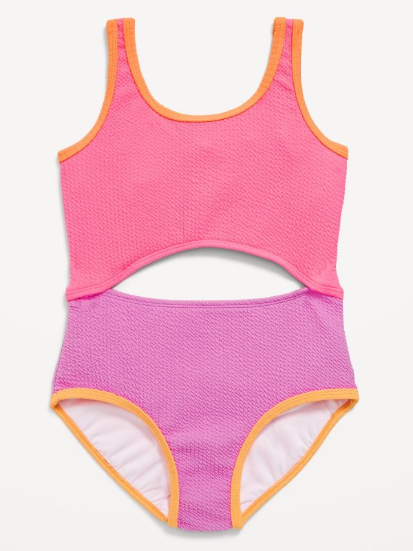 Textured Jacquard Cutout One-Piece Swimsuit for Girls