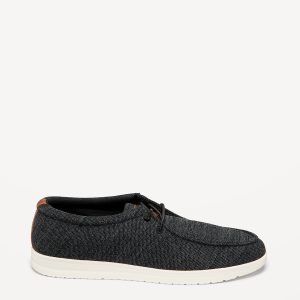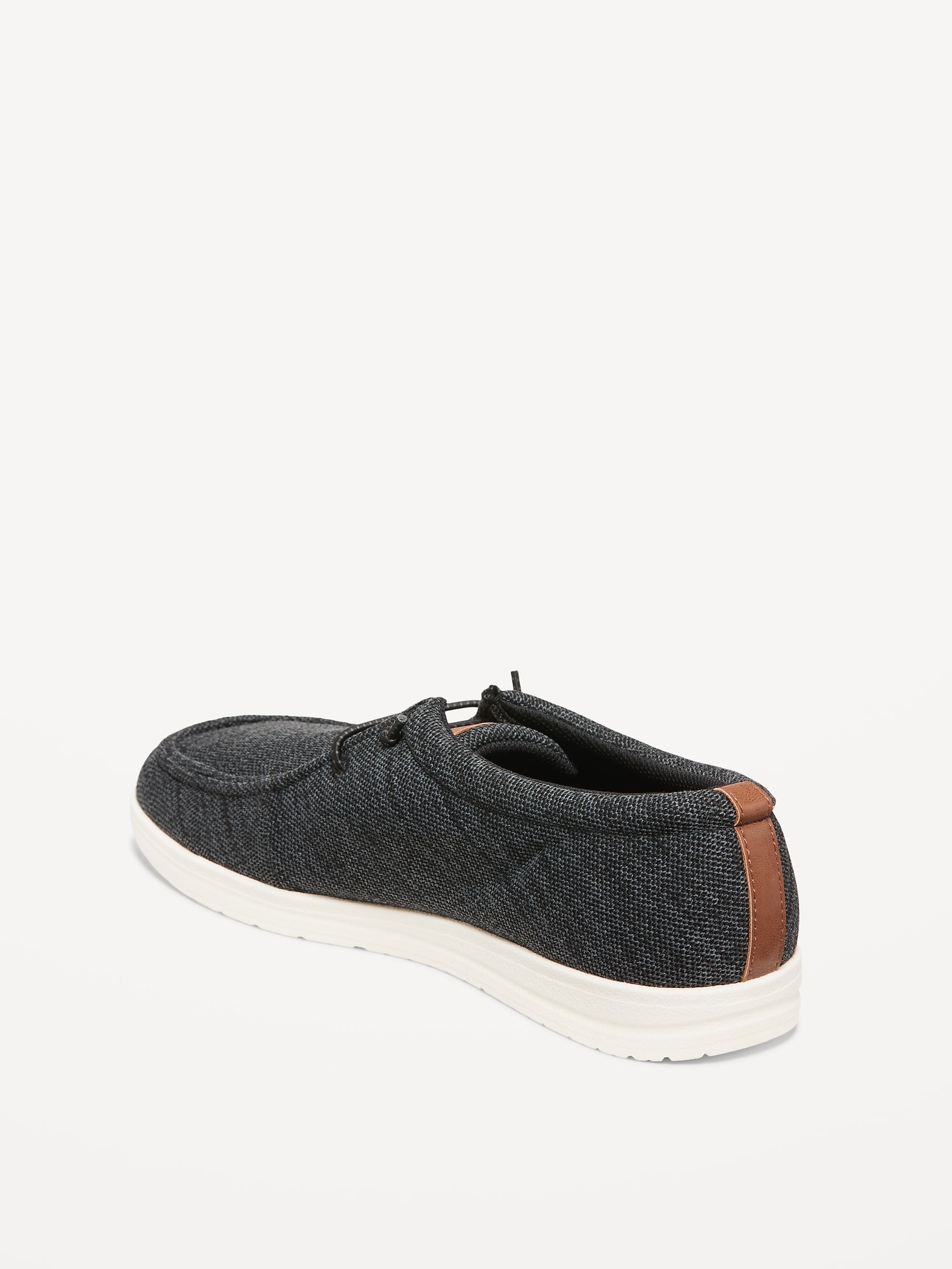 Textured Knit Loafers: decorative lace front, soft-knit upper, contrasting synthetic midsole, textured outsole, easy slip-on style, #684902
