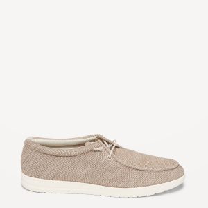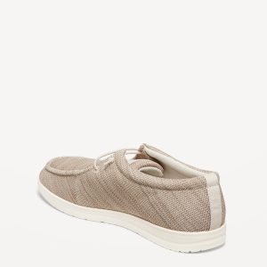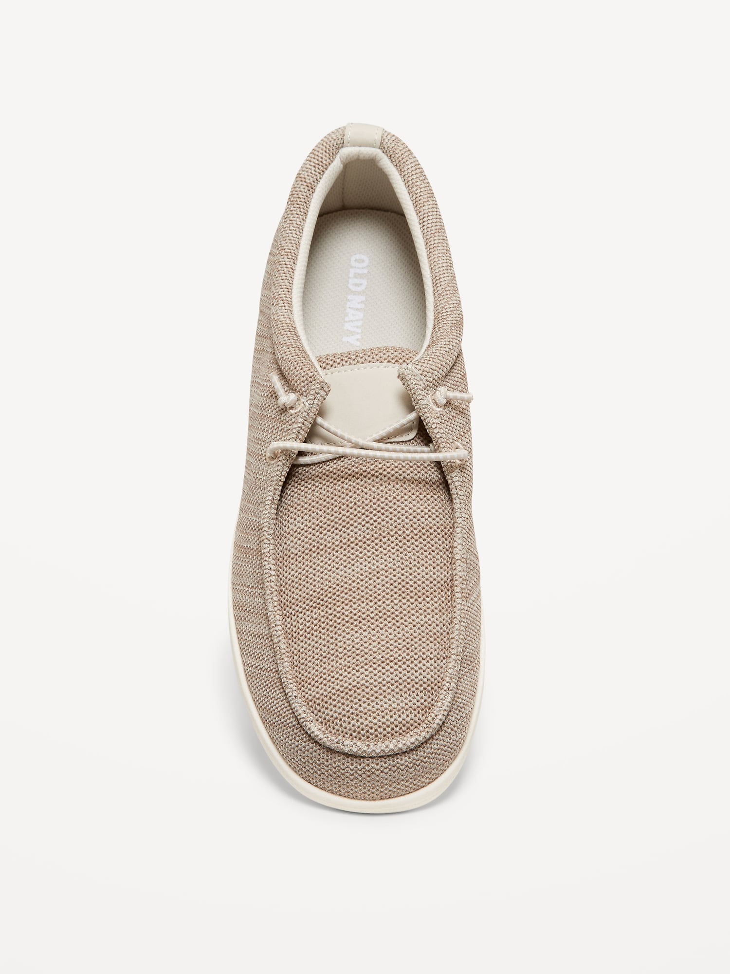 Textured Knit Loafers: decorative lace front, soft-knit upper, contrasting synthetic midsole, textured outsole, easy slip-on style, #684902
