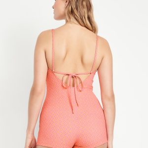 Textured Swim Romper — 2.5-inch inseam: scoop neck, spaghetti straps, seamed waist, #892291