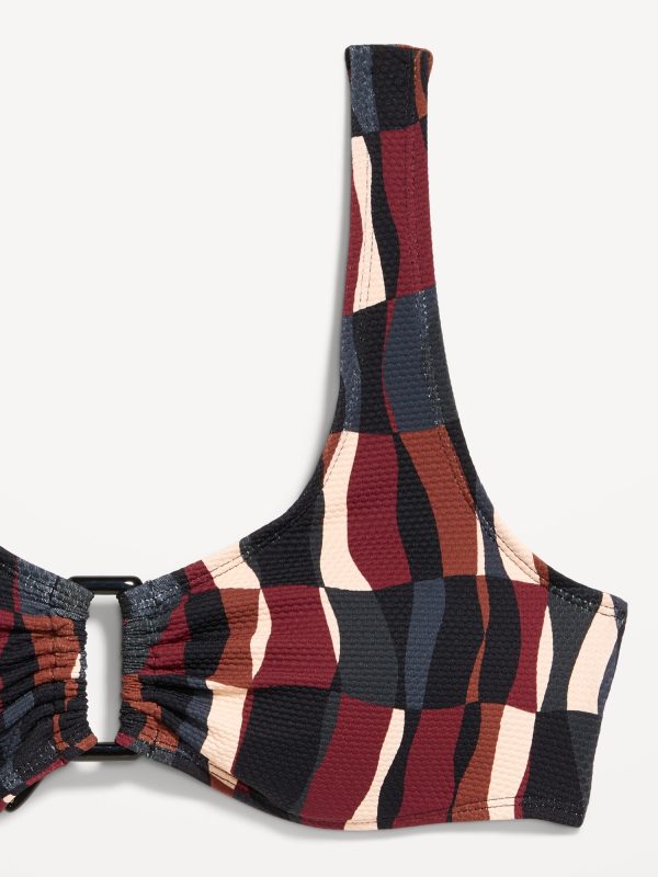 Textured Swim Top: scoop neck, wide straps, ruched front with o-ring accent, removable cups, hook-and-eye clasp at back, #660878