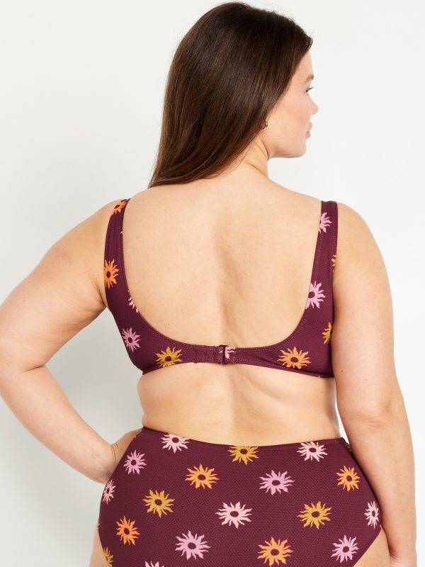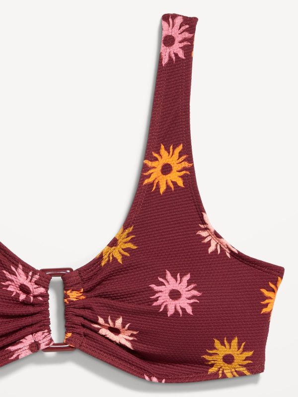 Textured Swim Top: scoop neck, wide straps, ruched front with o-ring accent, removable cups, hook-and-eye clasp at back, #660878