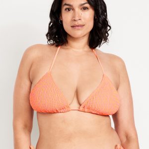 Textured Triangle String Bikini Swim Top