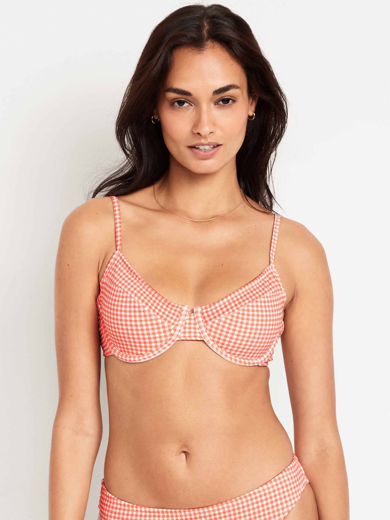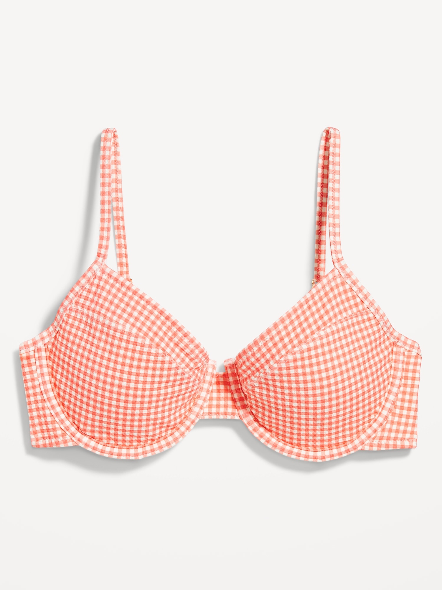 Textured Underwire Balconette Swim Top: adjustable straps, removable cups, underwire and side-boning support, adjustable hook-and-eye at back, full lining, #680791