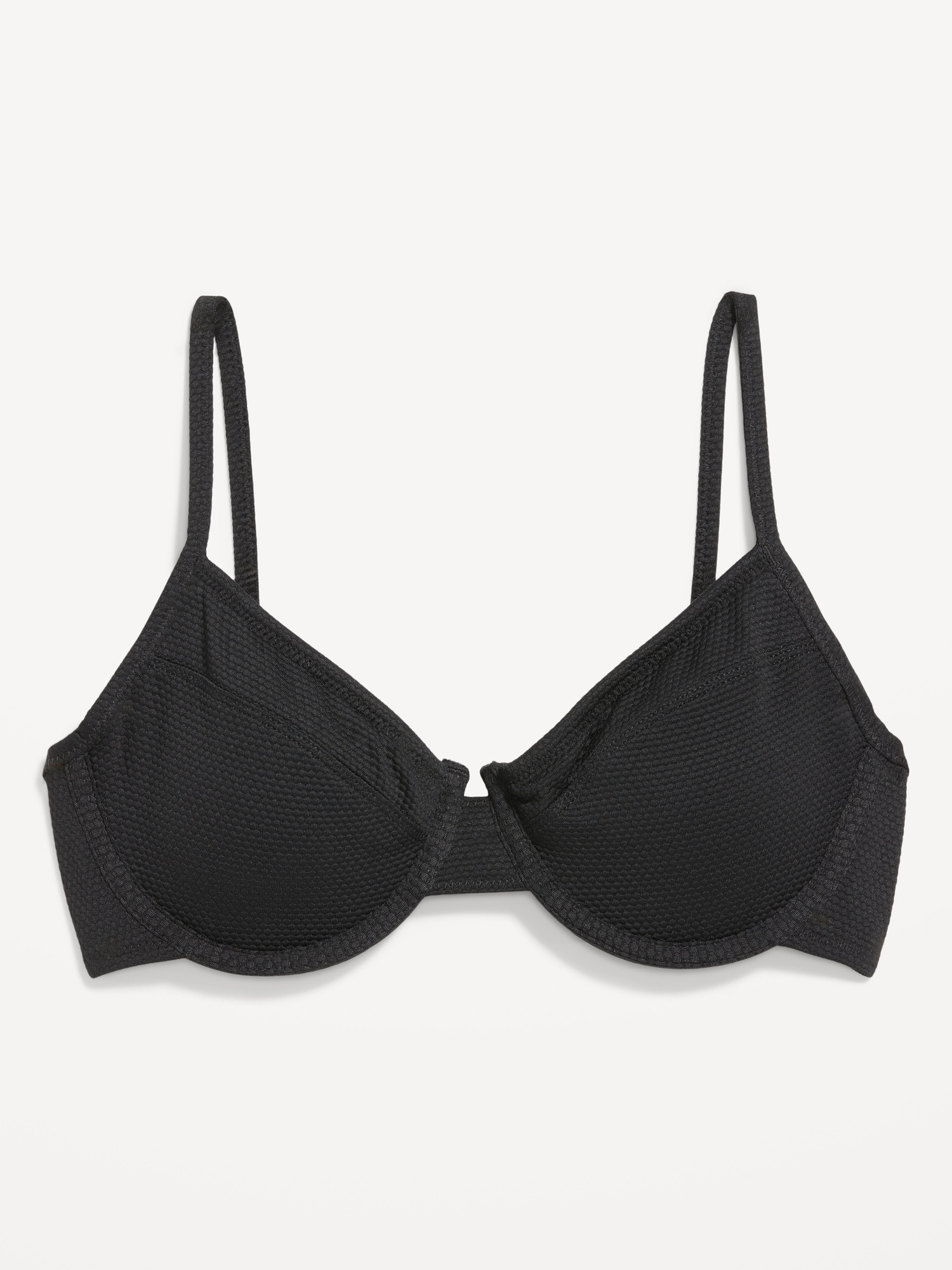 Textured Underwire Balconette Swim Top: adjustable straps, removable cups, underwire and side-boning support, adjustable hook-and-eye at back, full lining, #680791