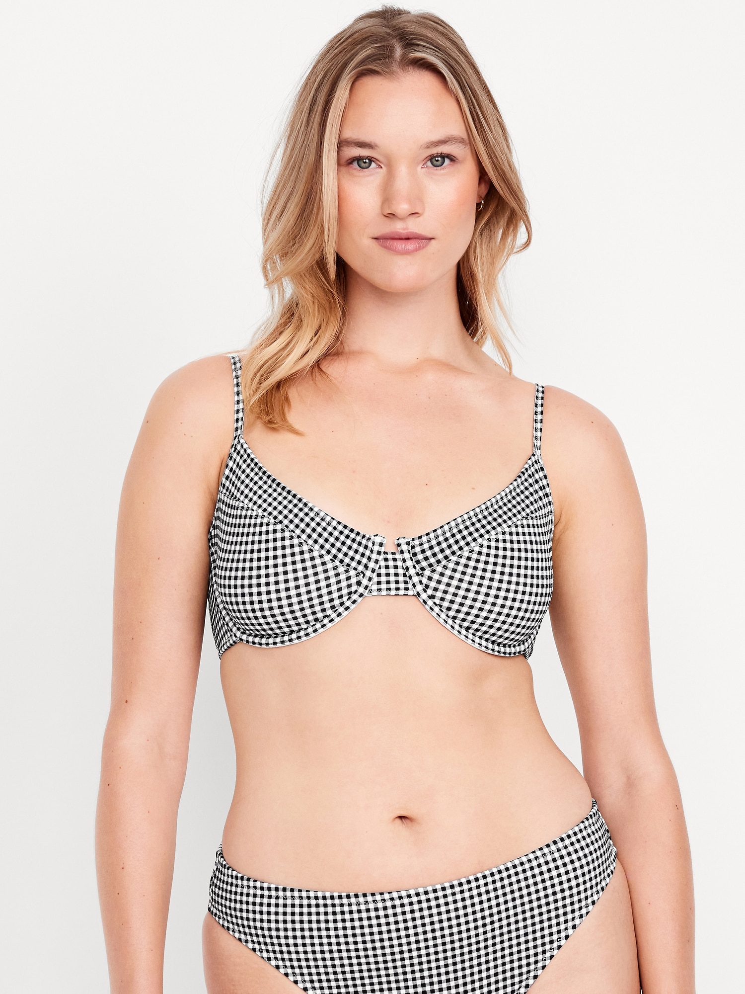 Textured Underwire Balconette Swim Top: adjustable straps, removable cups, underwire and side-boning support, adjustable hook-and-eye at back, full lining, #680791
